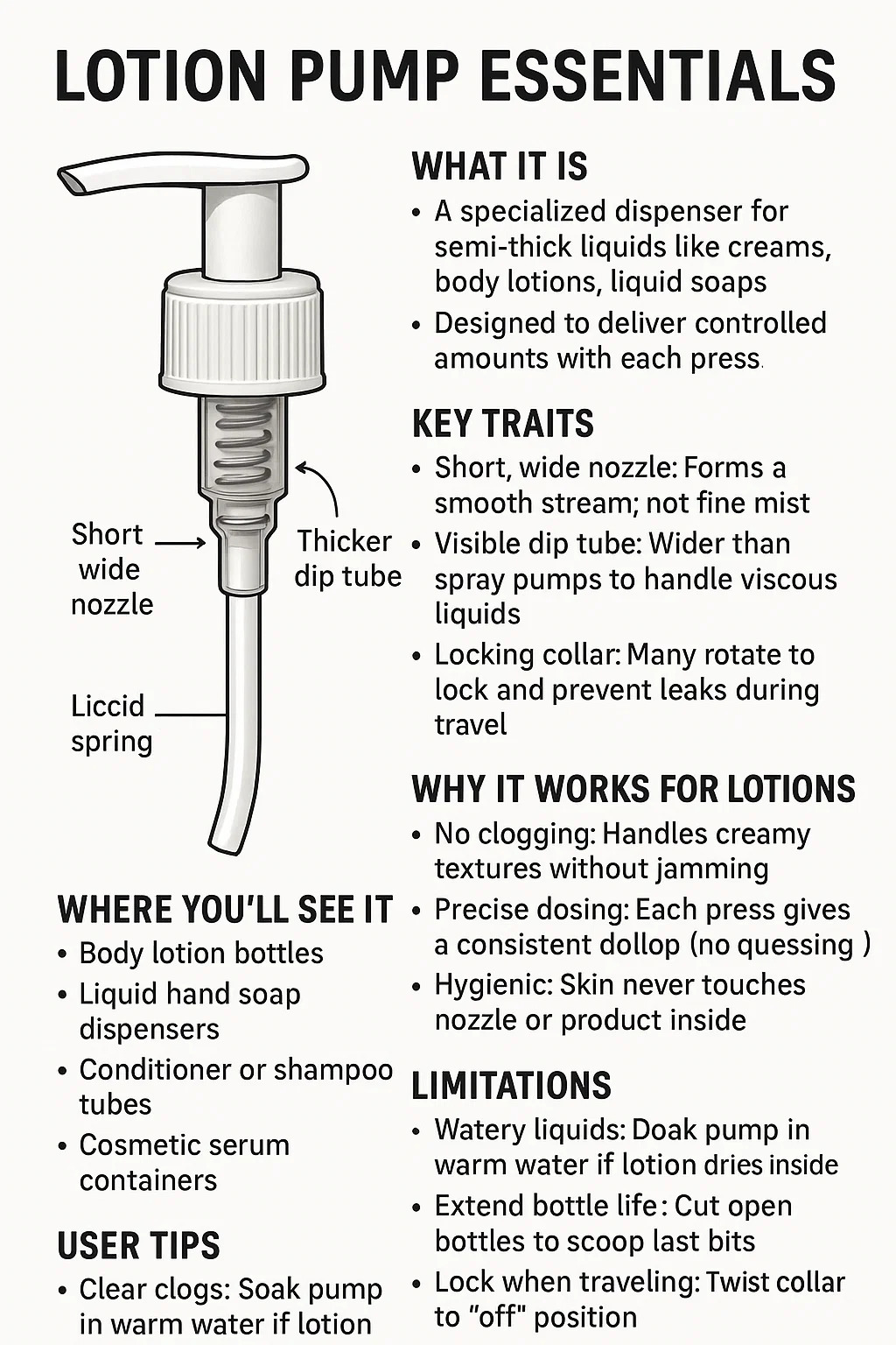 Pompa de loțiune Elementele esențiale